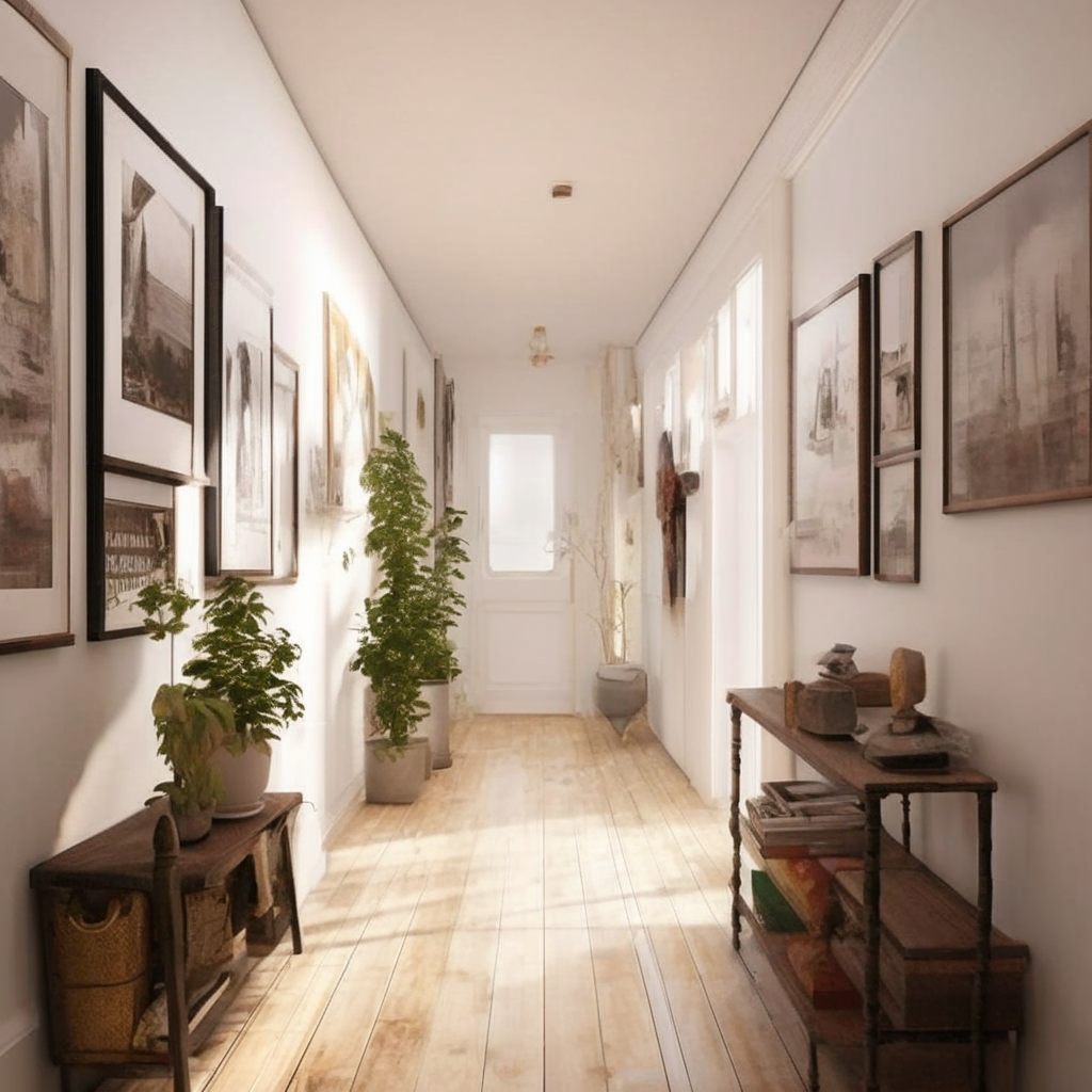 Умеренное количество декора помогает сделать пространство более приятным для жизни, при этом не перетягивает на себя внимание и не создаёт визуальный шум. Важно придерживаться минимализма, чтобы не загромождать даже небольшой коридор. Например, картина или стильная картина в узкой раме, несколько аккуратных горшков с комнатными растениями способны добавить теплоты и индивидуальности.
